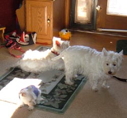 SPECIAL THANKS TO: Dr. Theodoroff and Dr. Saxton (and staff) at the Animal Medical Center of Troy and also Dr. Green and staff at Oakland Veterinary Referral Services in Bloomfield Hills, MI. Because of them, Jake is still here with us today and will be able to lead a full, normal life. Also thanks to so many others who helped Jake with contributions (financial and otherwise including one "angel" who paid off his bill at the emergency facility and another who sent us a nebulizer which she has donated to rescue) and all who prayed for him and send good thoughts his way! With all his support, how could he help but get well! |